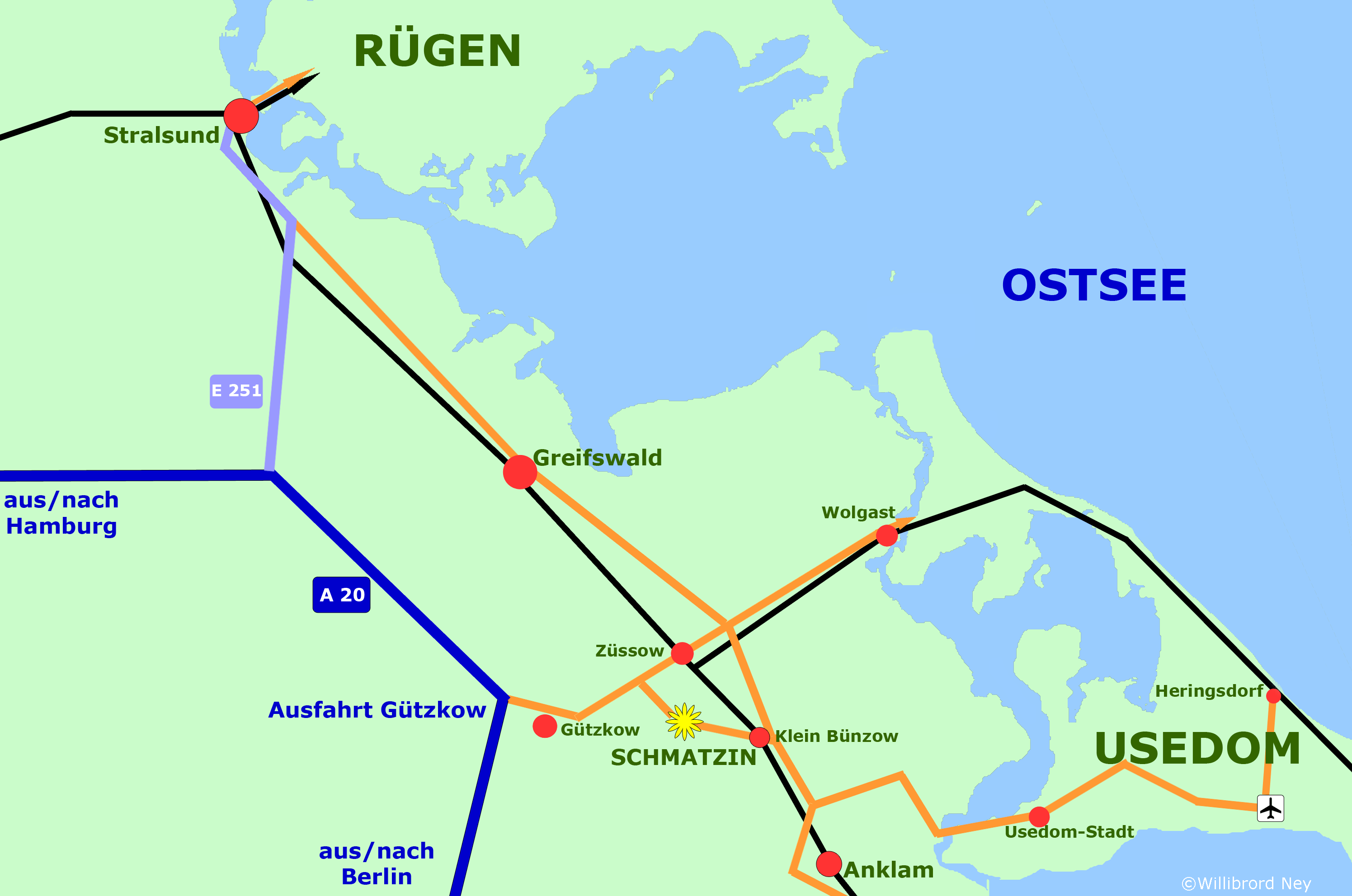 nach Züssow oder Klein Bünzow. Der nächste Flugplatz ist Heringsdorf