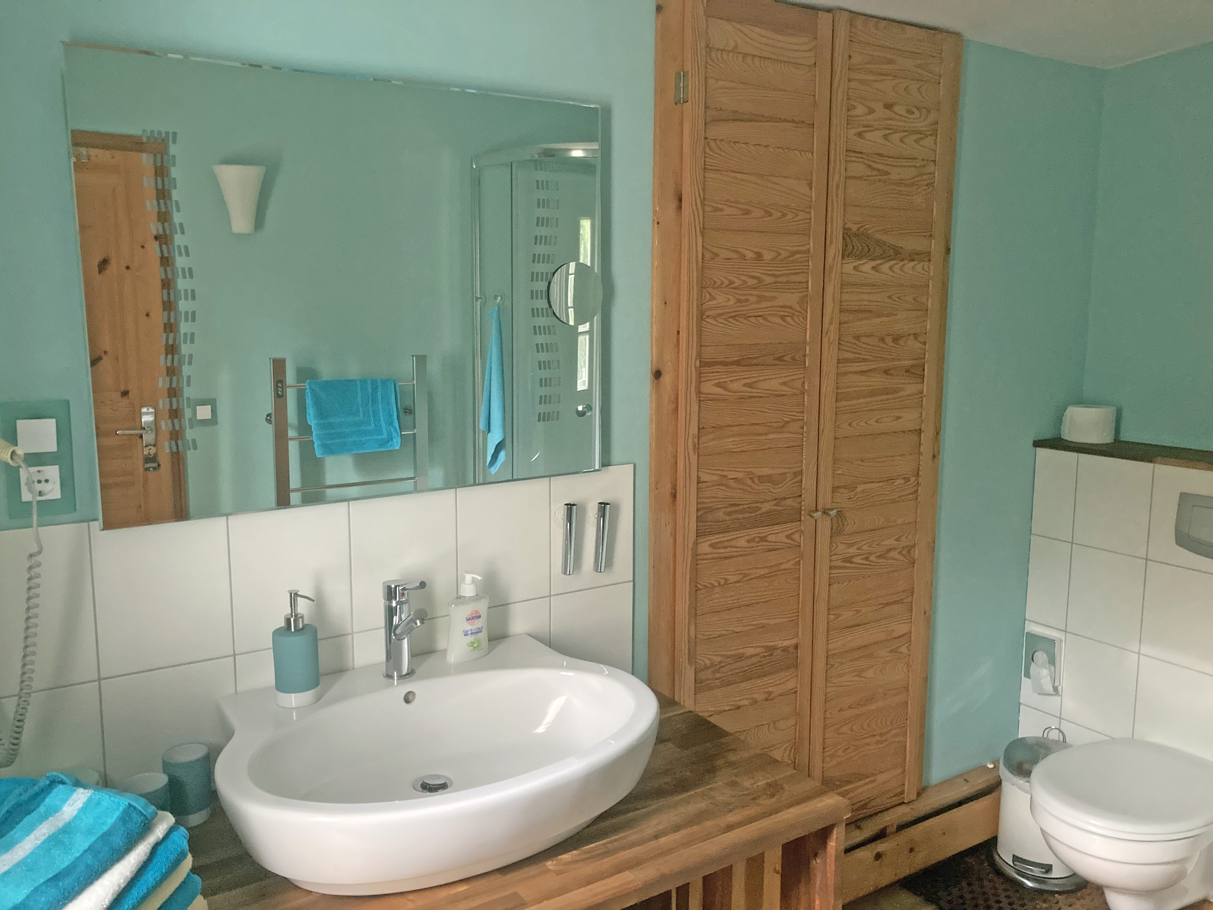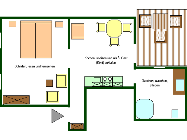 Das geräumige Bad ist mit Wellnessdusche, Handtuchtrockner, Hotelföhn und beleuchtetem Großspiegel ausgestattet. Außerdem stellen wir Ihnen neben Hand- und Duschtüchern auch Waschlotion, Wattepads und Ohrenstäbchen zur Verfügung. Selbstverständlich stehen Ihnen auch in diesem Appartement ein UHD-Sat-TV mit DVD-Player, eine DAB+-Stereoanlage, WLAN und ein Tresor zur Verfügung. Die eigene Terrasse (mit Sonnenschirm, Tisch, drei Stühlen und Aussensteckdose) sowie der gemeinsame Grillplatz für lauschige Abende vervollständigen Ihren Urlaubstraum.